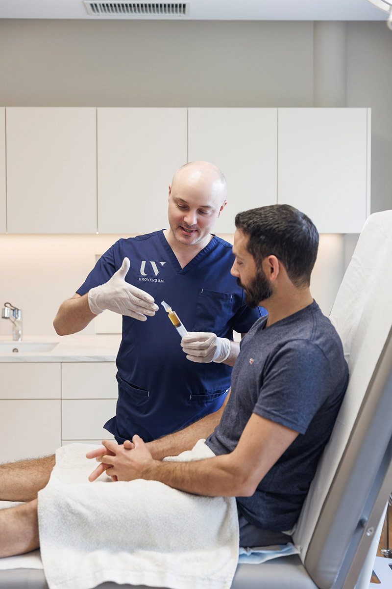 Im Anschluss wird das PRP an mehreren Stellen in die Schwellkörper vom Penis gespritzt. Es ist keine Vollnarkose nötig, eine lokale Anästhesie genügt. Die Behandlung dauert circa sechzig Minuten.