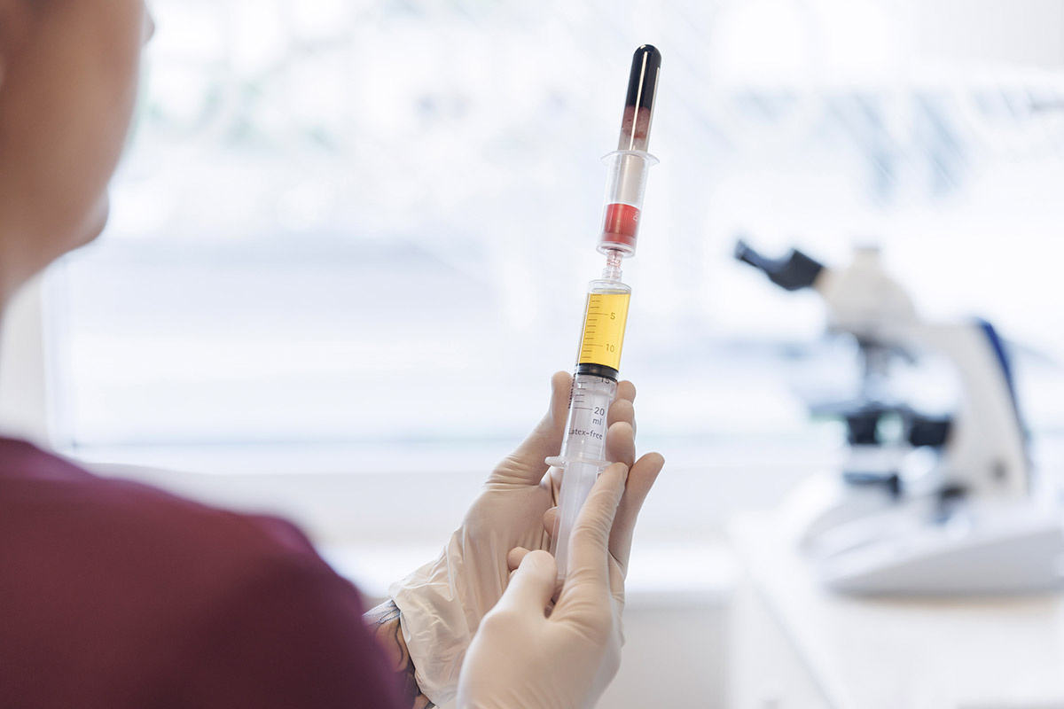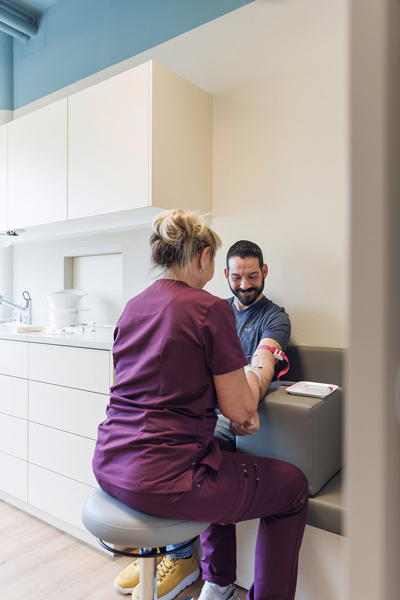 Die Behandlung findet ambulant in unserer Praxis statt. Zuerst wird eine geringe Menge an Blut entnommen um daraus körpereigenes plättchenreiches Blutplasma (PRP) zu gewinnen.